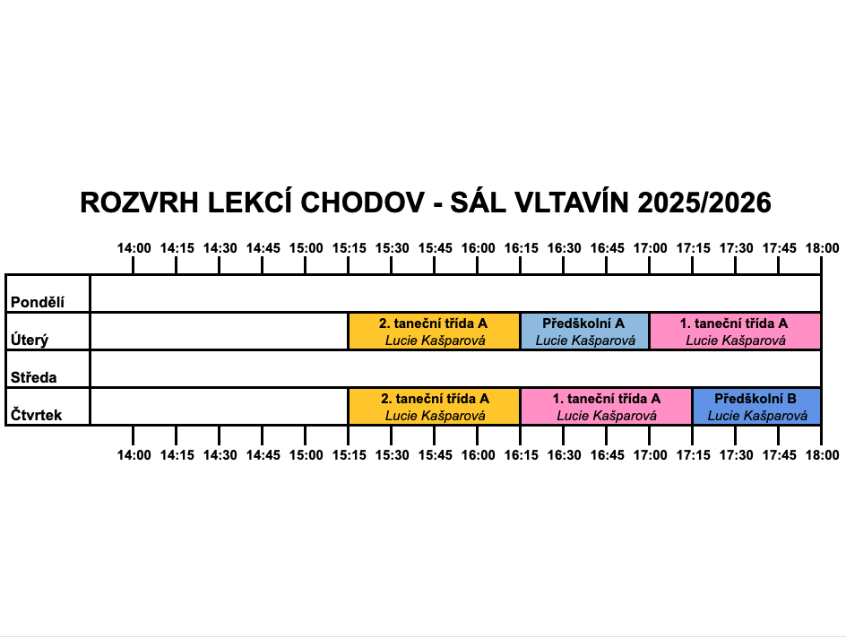 Taneční sál Vltavín a Zrcadlový sál se nachází asi tři minuty pěšky od zastávky autobusu Jarníková či U Kunratického lesa a jsou situovány v budově Kulturního centra Zahrada. Na této adrese jsou dva taneční sály se zrcadly, parketami, kvalitní audio aparaturou (připojení CD, PC nebo MP3 přes mixážní pult), šatnou a toaletami. Objekt je bezbariérový. Rodiče mohou čekat v bistru v přízemí nebo v šatně před sálem.